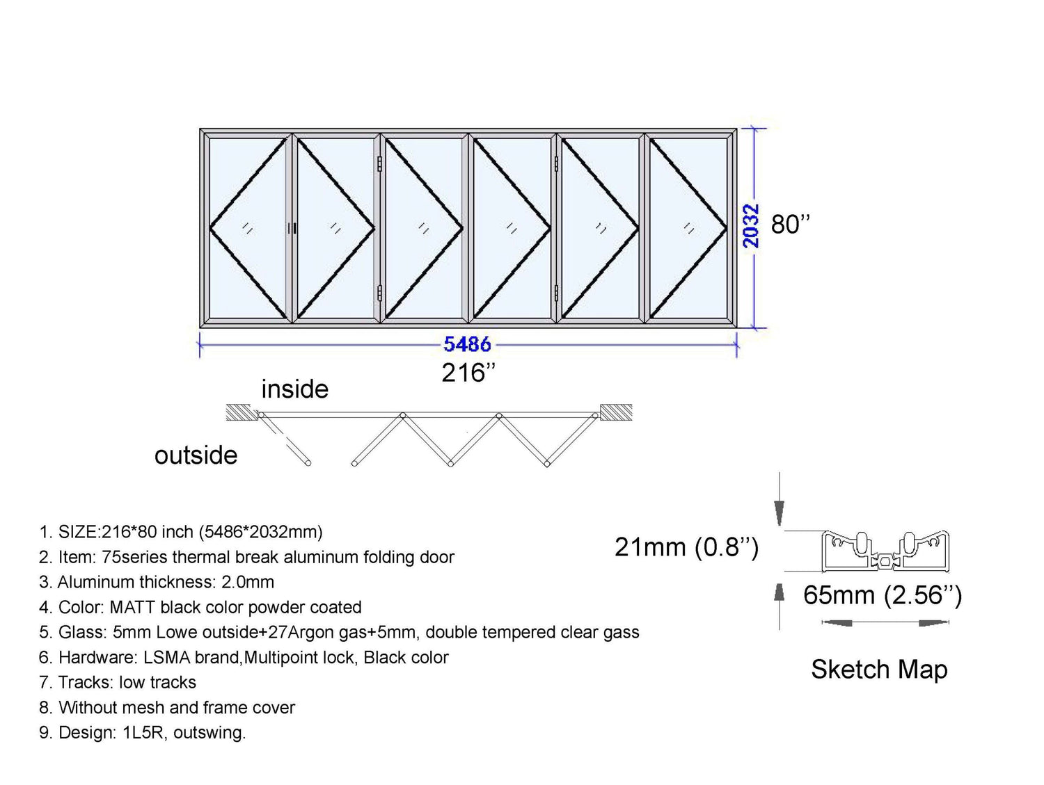 216"x80" Custom Energy Efficient Aluminum Bifold Door